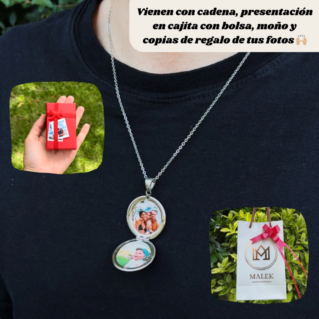 Este elegante relicario está diseñado para llevar 1 o 2 fotos, permitiéndote tener siempre cerca esos instantes inolvidables.